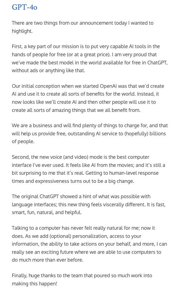 Hopefully, you all got to catch the new OpenAI product release yesterday. The pace of innovation in AI is mindblowing! We’ll be covering the release and more below: