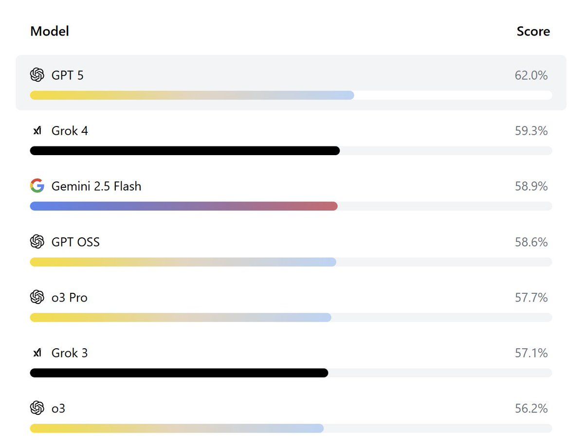 GPT-5 ranked first, followed by Grok 4 and Gemini 2.5 Flash. While these models can ace the USMLE, most struggled on real patient cases, with scores averaging around ~50%. None meeting the standard for real-world autonomy. The results show that AI can help with diagnostics and documentation, but still falls short of independent clinical judgment. In line with other stories we’ve reported on in the last weeks, medicine, at least for now, still needs a human in the loop. (link)(tweet)