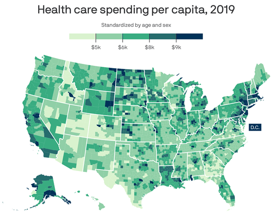 Long Island, Washington, D.C., and California's Bay Area had the country's highest healthcare spending