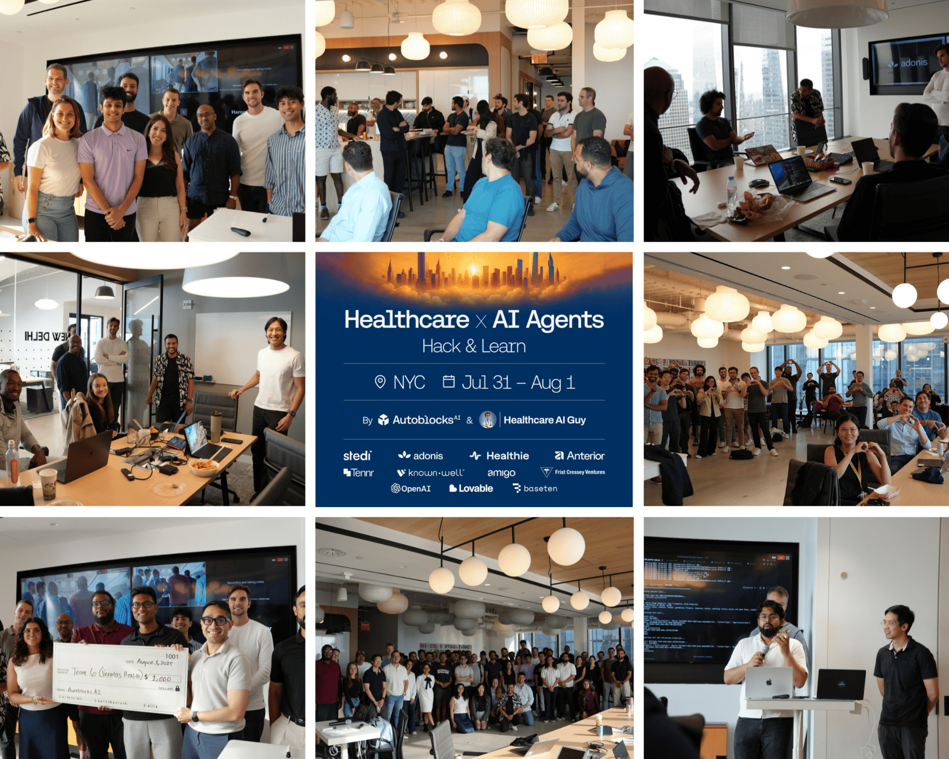 We just wrapped an amazing Healthcare x AI Agents Hackathon in NYC! Big thanks to our partners OpenAI, Adonis, Anterior, Stedi, Healthie, Tennr, knownwell, Amigo, Frist Cressey Ventures, Lovable, and Baseten for making it all possible. Over 150 engineers, clinicians, and operators came together to build agentic solutions for real healthcare problems. 16 teams worked on everything from care coordination to clinical documentation, using voice tech, multi-agent systems, and EHR integrations. Tons of great ideas, good food, and even better people. We’re excited to keep the momentum going and to keep supporting the builders pushing healthcare forward. Below are the winners! (link)