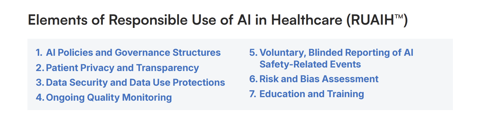 The Coalition for Health AI (CHAI) and the Joint Commission have released their first joint guidance on the responsible use of AI in healthcare. Rather than focusing on specific tools, the document sets out principles for how hospitals and health systems should govern, deploy, and monitor AI safely. The framework highlights seven core elements: establishing formal governance, protecting patient privacy, ensuring data security, ongoing quality monitoring, voluntary safety reporting, bias and risk assessment, and staff and patient education.