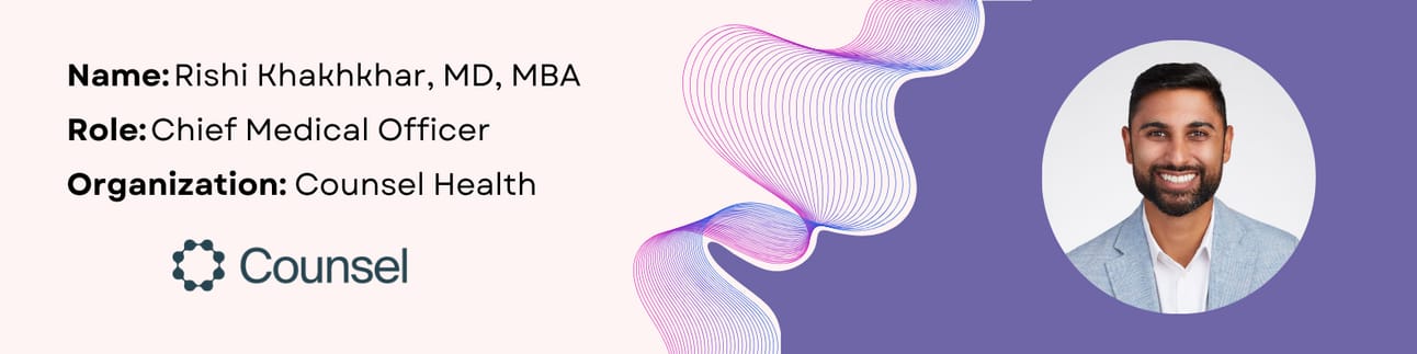 We sat down with Dr. Rishi Khakhkhar, CMO at Counsel Health, a virtual medical practice specializing in messaging-based care. Counsel offers patients unlimited access to medical advice from expert physicians and is redefining what AI-enabled, asynchronous care looks like at scale. A practicing emergency physician and digital health operator, Dr. Khakhkhar shared how his team is rethinking access, continuity, and clinical workflow from the ground up.
